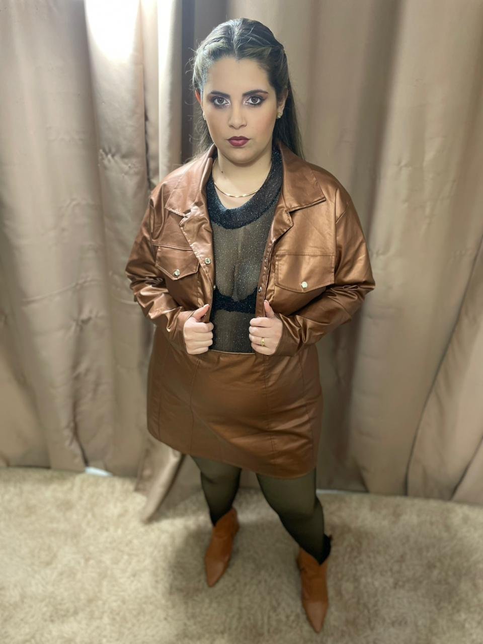JAQUETA + SAIA MARROM RESINADA